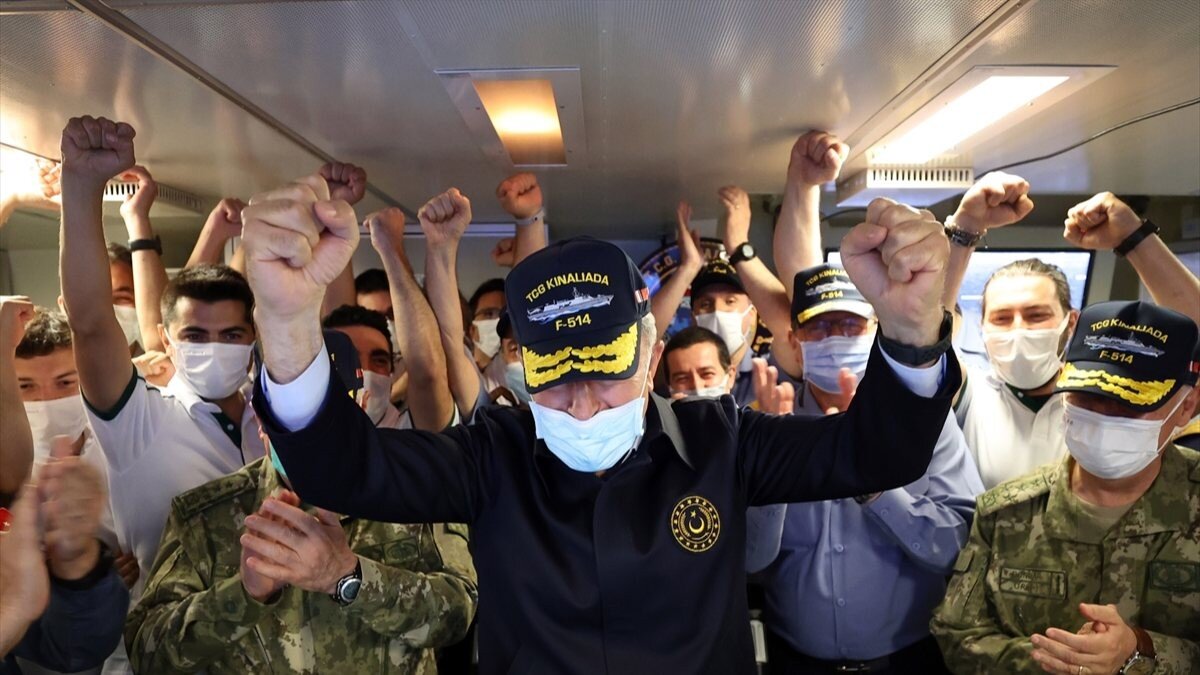Atışın yapılacağı milli gemi TCG Kınalıada korvetinde Donanma Komutanı Oramiral Ercüment Tatlıoğlu tarafından karşılanan Akar ve komutanlara faaliyete ilişkin brifing verildi.