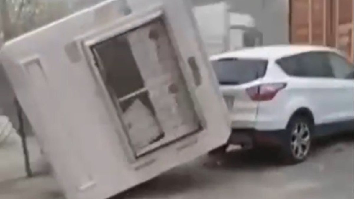 Görevlinin içinde oturduğu bahçedeki kulübe, fırtınanın etkisiyle park halindeki bir arabanın üzerine devrildi. Görevliye yardım etmek isteyen çevredekiler, fırtınanın şiddetiyle kulübeye yaklaşamadı.