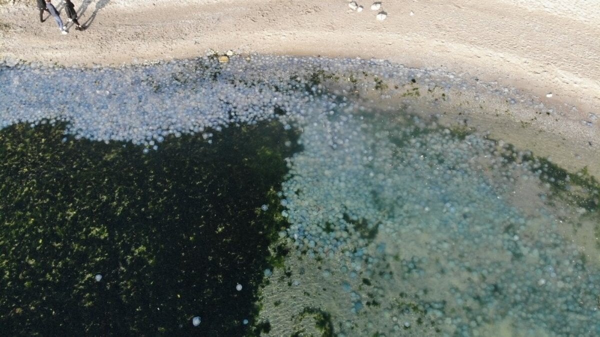 Avcılar sahilindeki denizanaları drone ile havadan da görüntülendi.