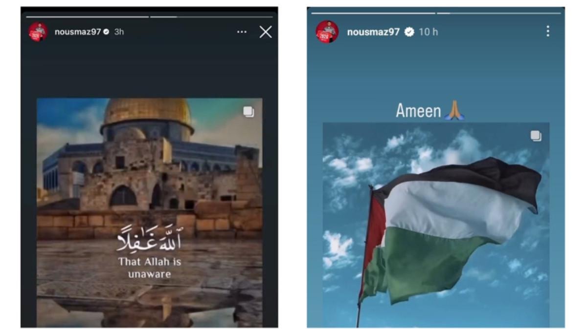 Fas kökenli 25 yaşındaki Hollandalı futbolcu, sosyal medya hesabında Kubbetü's-Sahra'nın fotoğrafına yer vererek Filistin'e desteğini ifade etti.