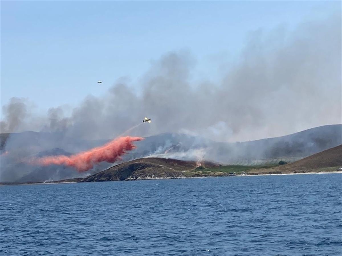 Avşa Adası'ndaki yerleşime uzak kırsal bölgede henüz bilinmeyen nedenle arazi yangını çıktı.
