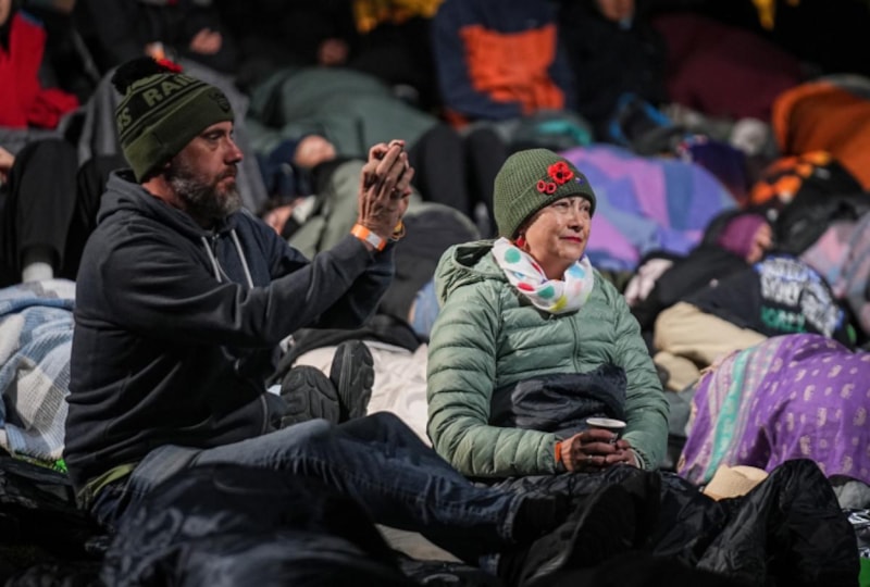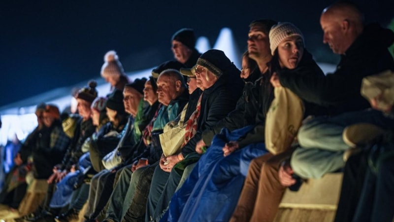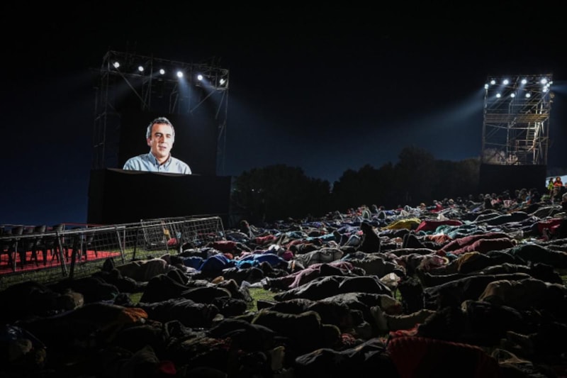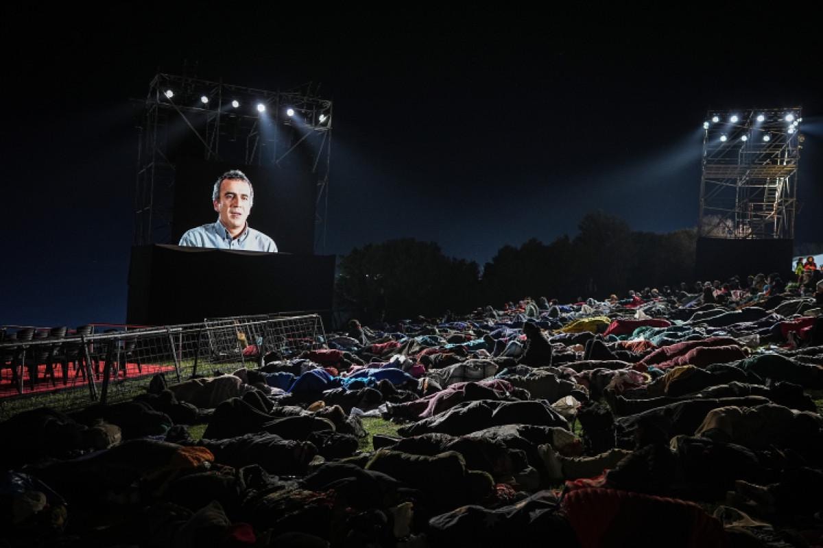 Katılımcılar, uyku tulumları ve battaniyeler içinde tören alanına kurulan dev ekrandan Çanakkale Savaşları'na ilişkin belgeseli izledi ve gerçekleştirecekleri ayin saatini beklemeye başladı.