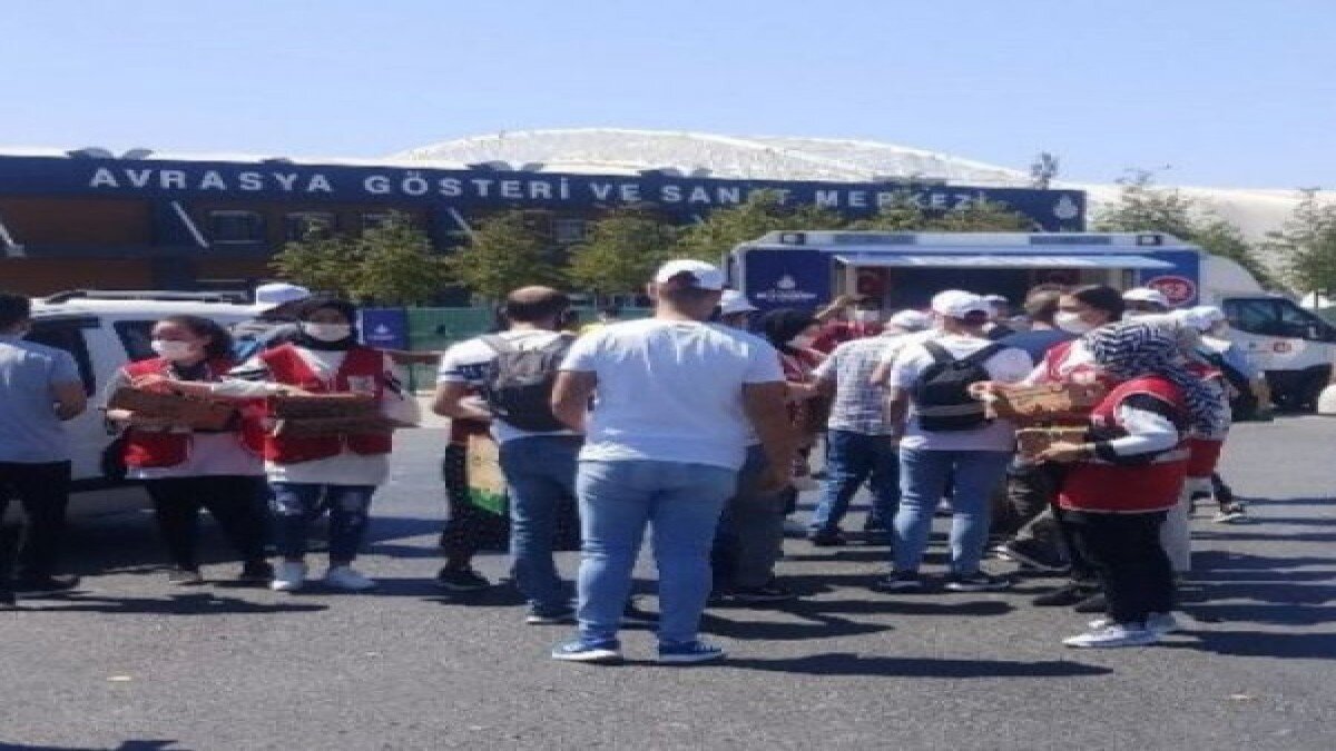Dev ekranlardan Ayasofya'da verilen Kur'an-ı Kerim tilaveti de gösterilen alanda, Türkiye'nin çeşitli illerinden gelenler için Türk Kızılayı tarafından ikramlarda bulunuldu.