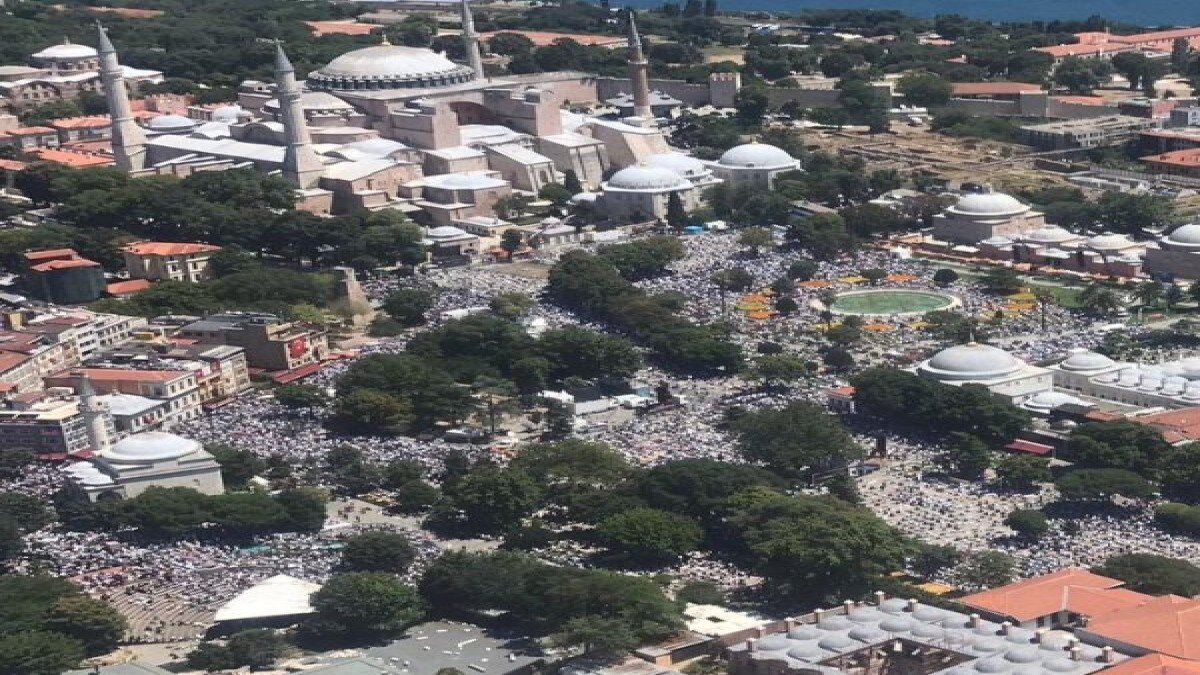 Ayasofya Camii'ndeki 86 yıllık hasret bugün sona erdi. Seccadesini alan yola çıktı, caminin içi ve çevresi tamamen doldu.