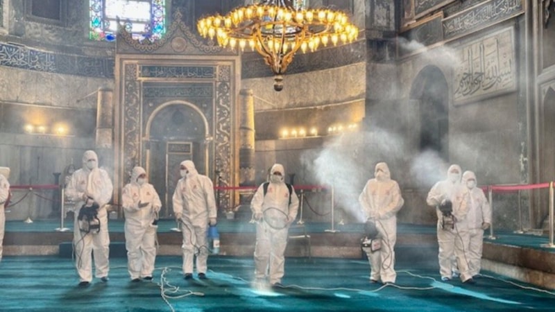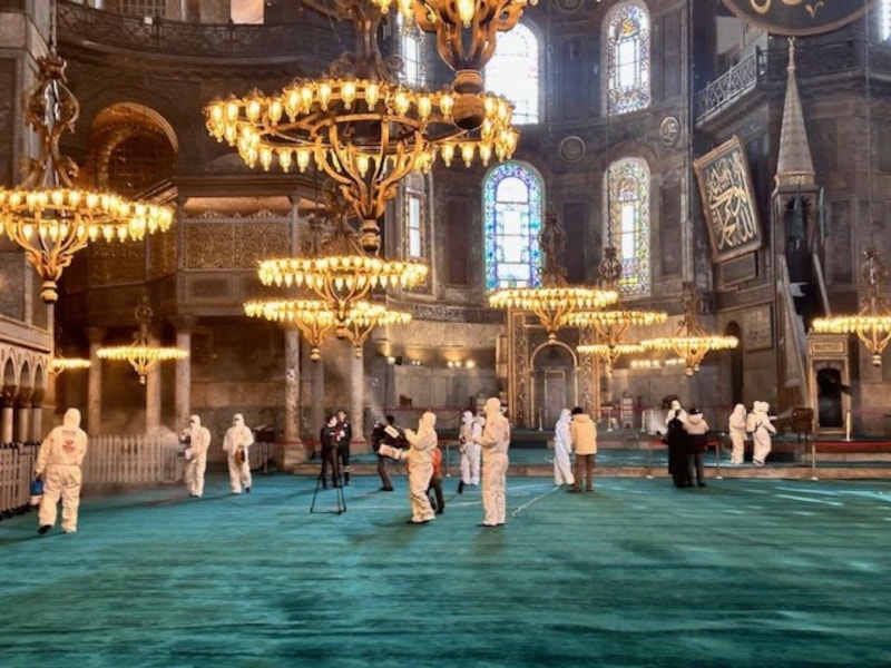 Tekrar camiye dönüştürülmesinin ardından her yıl milyonlarca Müslüman'ın ziyaret ettiği Ayasofya Camii'nde, Ramazan ayı öncesi temizlik çalışması yapıldı. Caminin içi gül suyuyla yıkanırken, avlusu ve çevresi de sıcak suyla temizlendi.