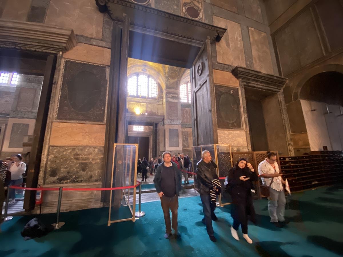 Ayasofya Camii’nin imparator kapısında bulunan ahşap madalyon geçtiğimiz yıl tahribata uğramıştı.