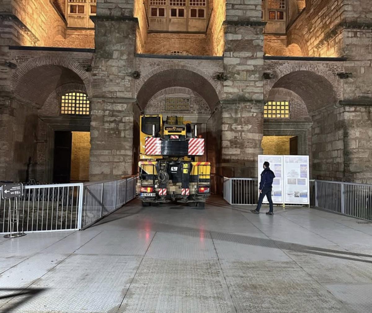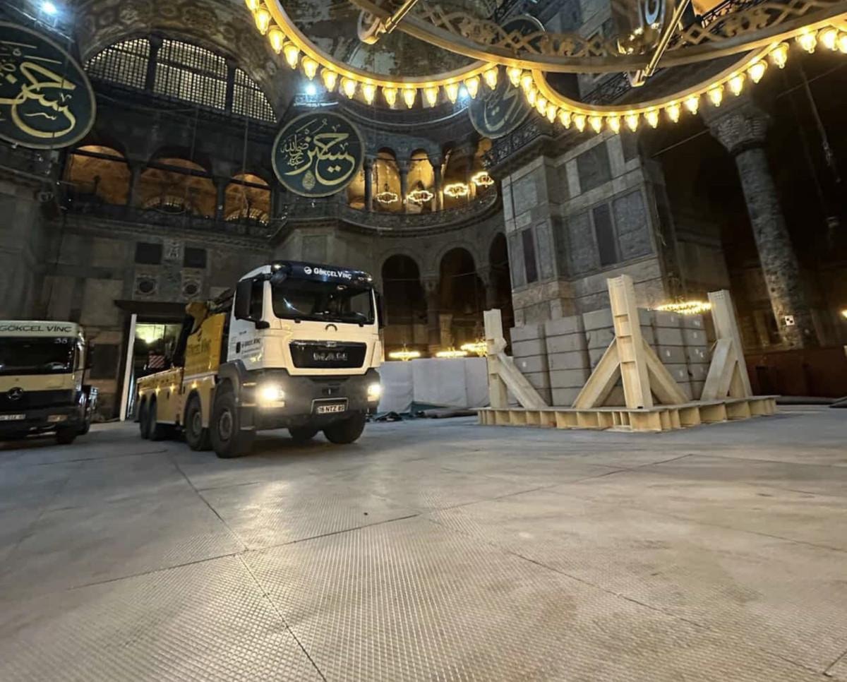 Ayasofya Camii’nde başlatılan restorasyon çalışmaları sırasında, tarihi binanın içine yüksek tonajlı kamyonlar sokulduğu iddiaları sosyal medyada gündem oldu.