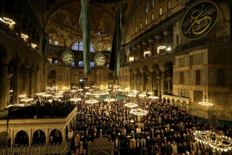 İstanbul Valiliği'nden yapılan açıklamaya göre, Ayasofya-i Kebir Camii Şerifi'nde bayram namazı hazırlıkları nedeniyle yarın saat 23.00'ten 21 Nisan Cuma saat 04.00'e kadar ibadet ve ziyaretlere ara verilecek.