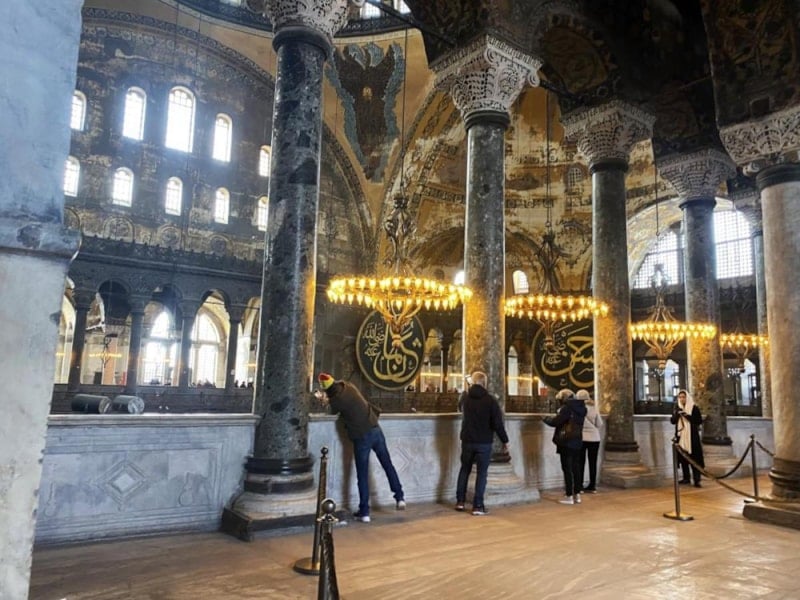 Bu güzel bir gelişme oldu. İkinci kata çıkamıyorduk. Orada galeri bölümü var. Galeri bölümünde Ayasofya'nın en önemli eserleri bulunuyor. Ayrıca imparator ve imparatoriçelerin çok güzel ikonları, mozaikleri var. Onlar açıldılar. Dolayısıyla görmediğiniz şeyleri şu anda hep beraber misafirler de bunlara şahit olacaklar. Galeri katından çıktıktan sonra mermer kapının sağ tarafından özel bir rampalı iniş vermişler.