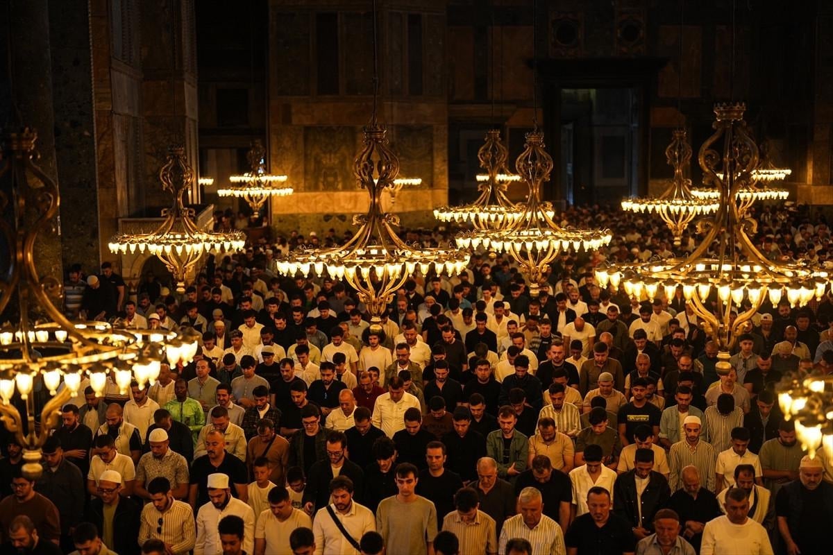 Binlerce kişi, bayram namazını kılmak için erken saatlerde Ayasofya-i Kebir Cami-i Şerifi’ne akın etti.