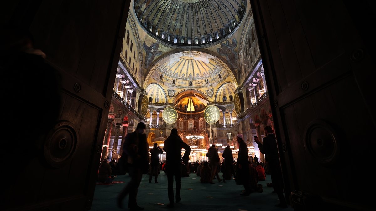 Ayasofya'da uzun yıllardır ilk defa idrak edilen Regaip Kandili'nde cami içerisinde ve dışında huzur veren görüntüler oluştu.