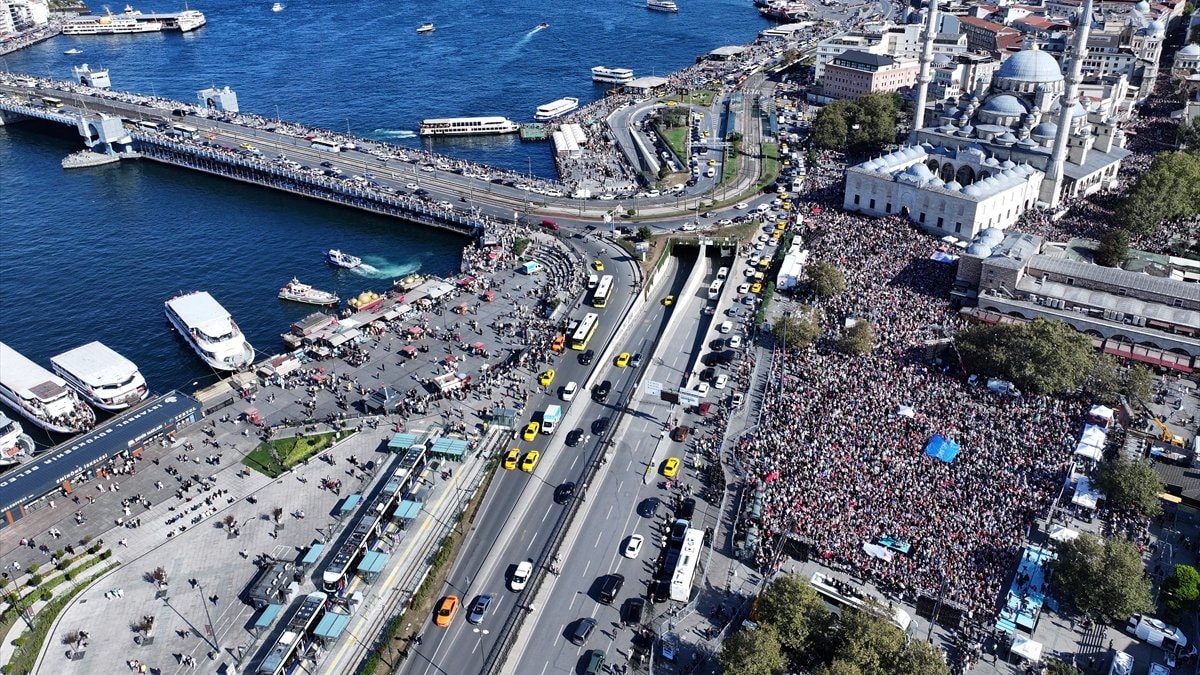 Ayasofya'dan Eminönü'ne yürüyen kalabalık, dünyaya "Gazze'ye özgürlük" mesajı veriyor.