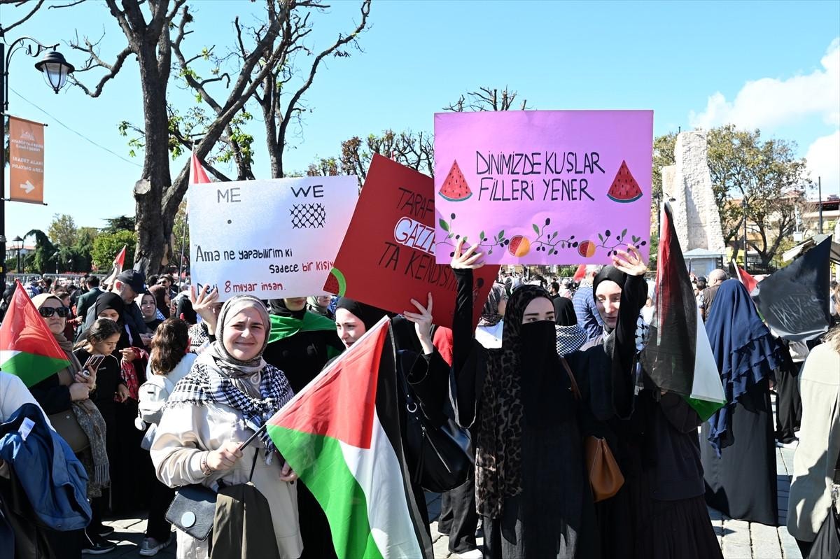 - Yürüyüşe katılan binlerce kişi, İsrail'in Filistin üzerindeki saldırılarını protesto etti.