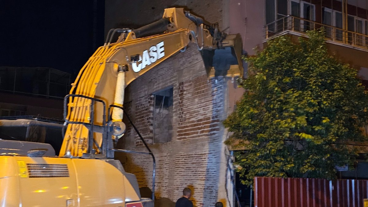 Hafriyat firmasına ait iş makinesi ile binanın yıkılma tehlikesine karşı önlem alınırken, olay yerine güvenlik amaçlı ekipler sevk edildi.