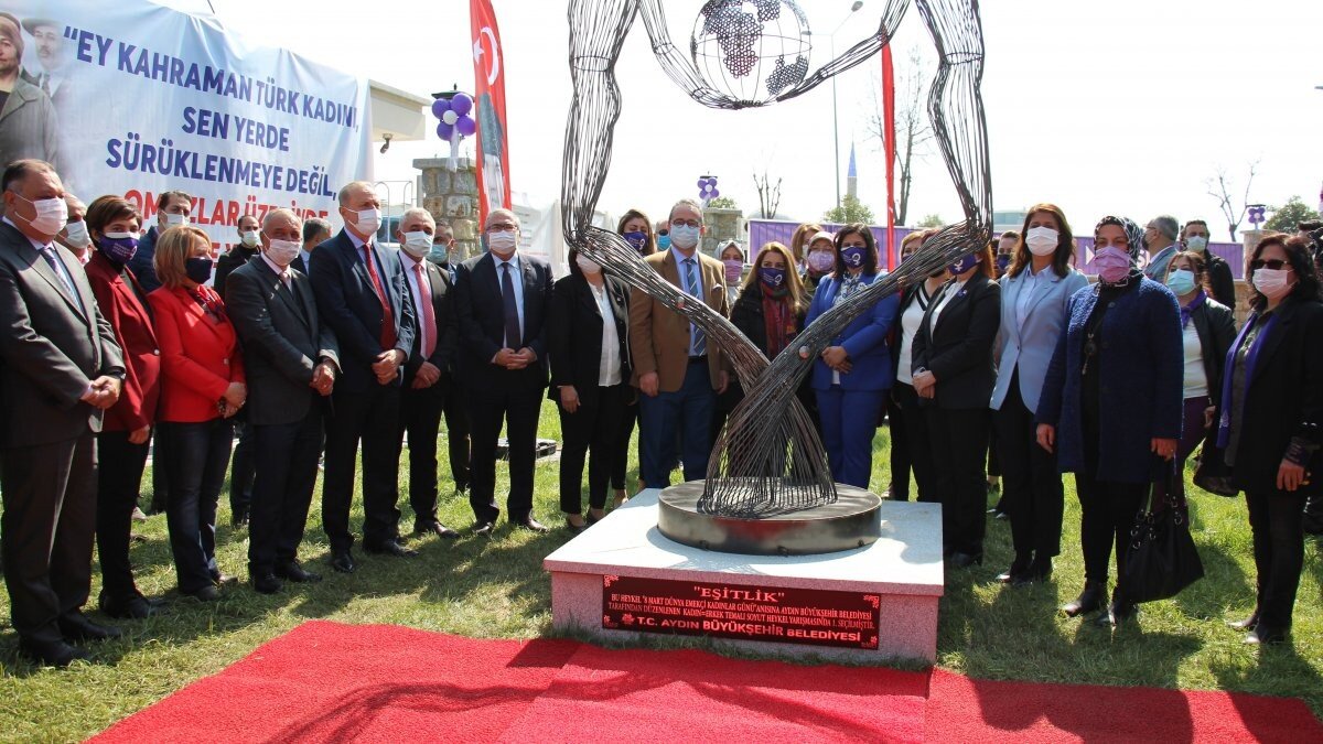 Aydın Büyükşehir Belediyesi, kadın erkek eşitliği temalı “Eşitlik” isimli soyut heykeli, 8 Mart Dünya Kadınlar Günü’nde törenle açtı.