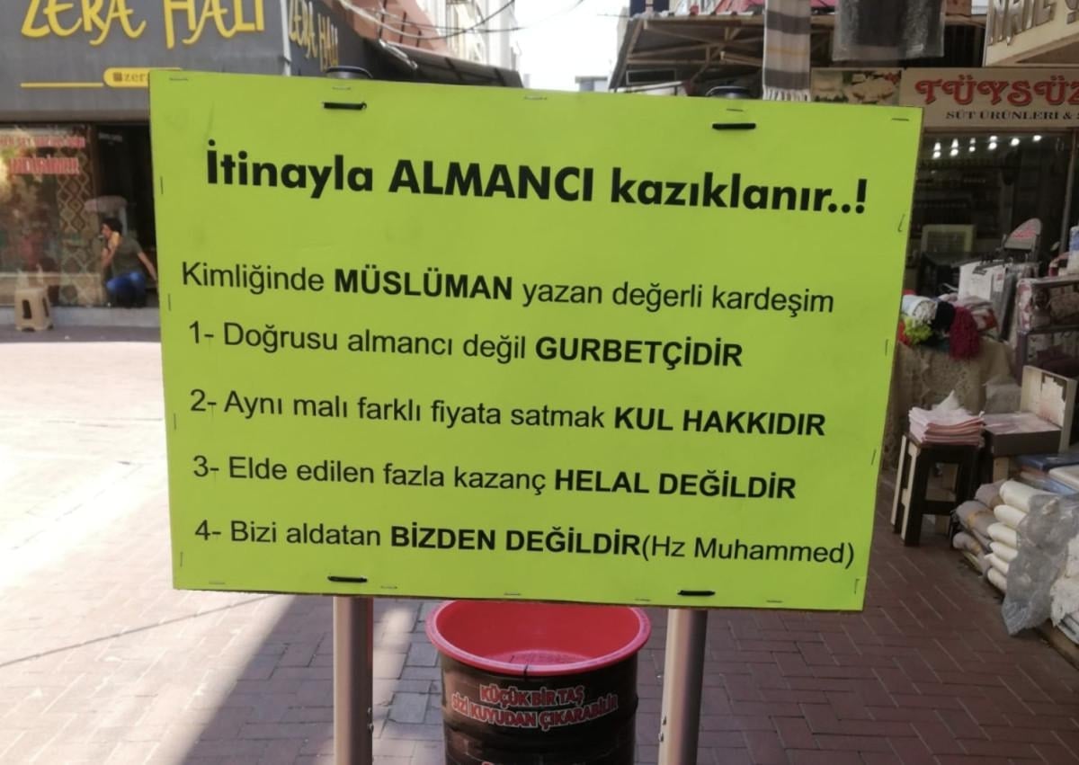 Çarşıda herkesin görebileceği bir alana asılan pankartta esnaflara yönelik sitem yer aldı.