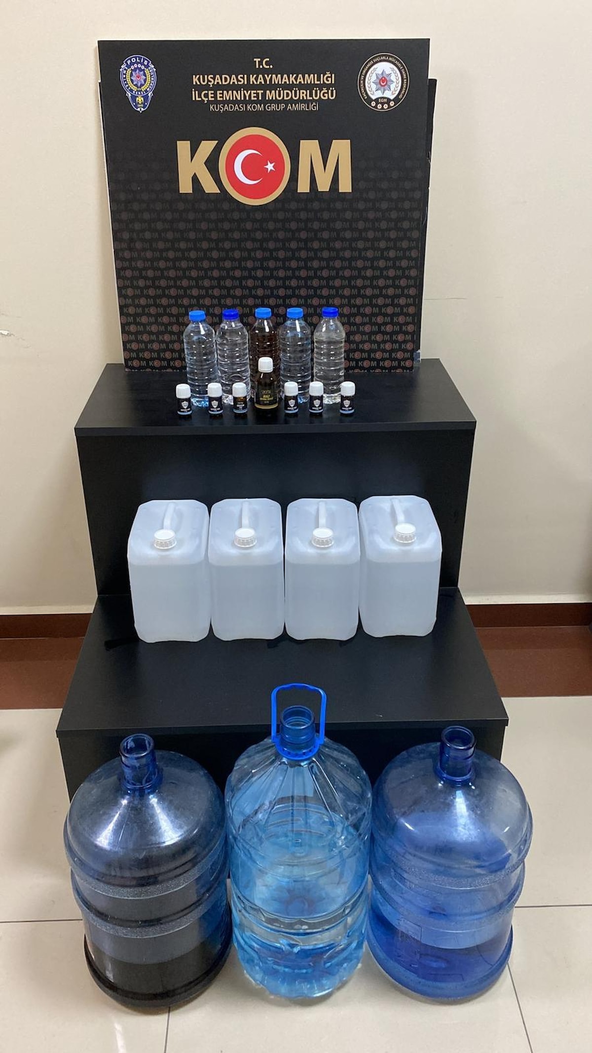 Şahsın, aracında yapılan aramalarda, 6 adet anason aroması, 4 adet 5 litrelik bidonlar içerisinde olmak üzere toplam 20 litre etil alkol, 2 Adet 0.50 Cl pet şişelere konulmuş satışa hazır sahte içki, 2 adet 0.50 Cl pet şişelere konulmuş satışa hazır sahte içki, 1 adet 0.50 Cl pet şişelere konulmuş satışa hazır sahte içki, 1 bidon içerisinde toplam 5 litre sahte içki, 1 bidon içerisinde toplam 5 litre sahte içki, 1 bidon içerisinde toplam 5 litre sahte içki ele geçirildi.