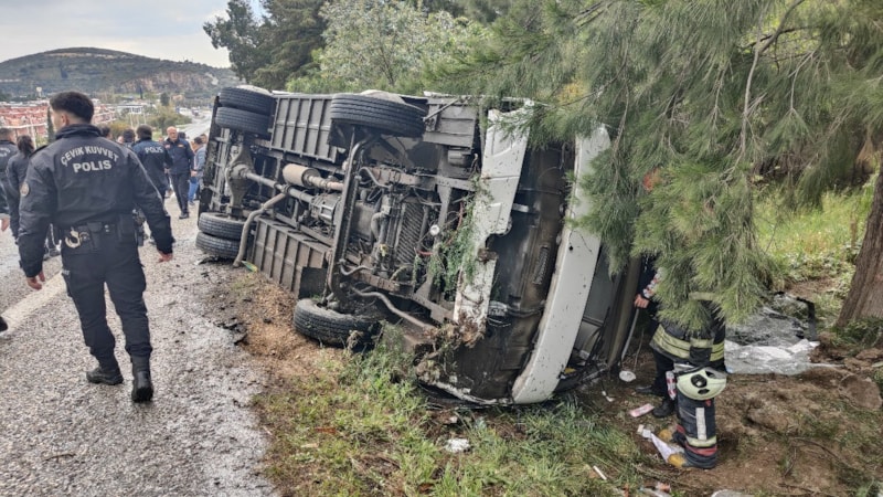Aydın’ın Kuşadası ilçesinde yaşanan kazada, otel personelini taşıyan servis aracı devrildi.