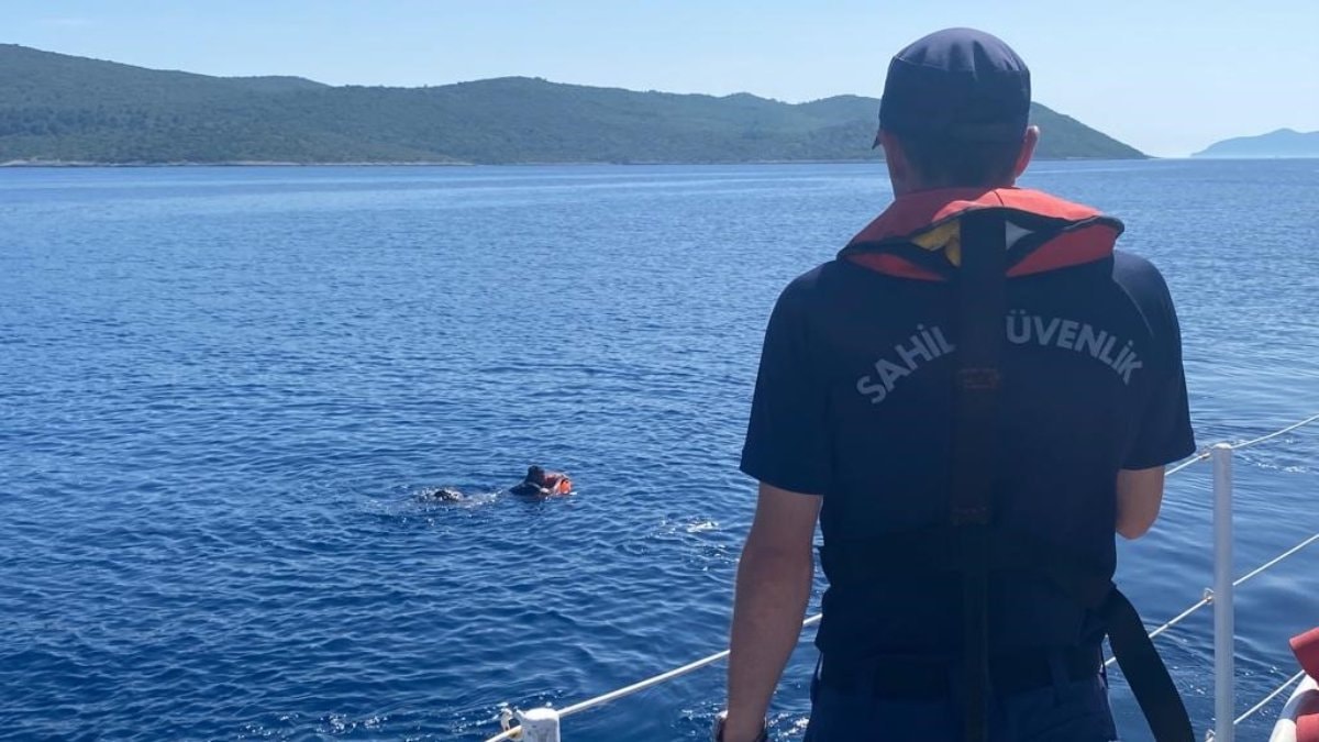 Harekete geçen ekipler, yüzerek Yunanistan’ın Sisam Adası’na geçmeye çalışan bir düzensiz göçmeni yakaladı.