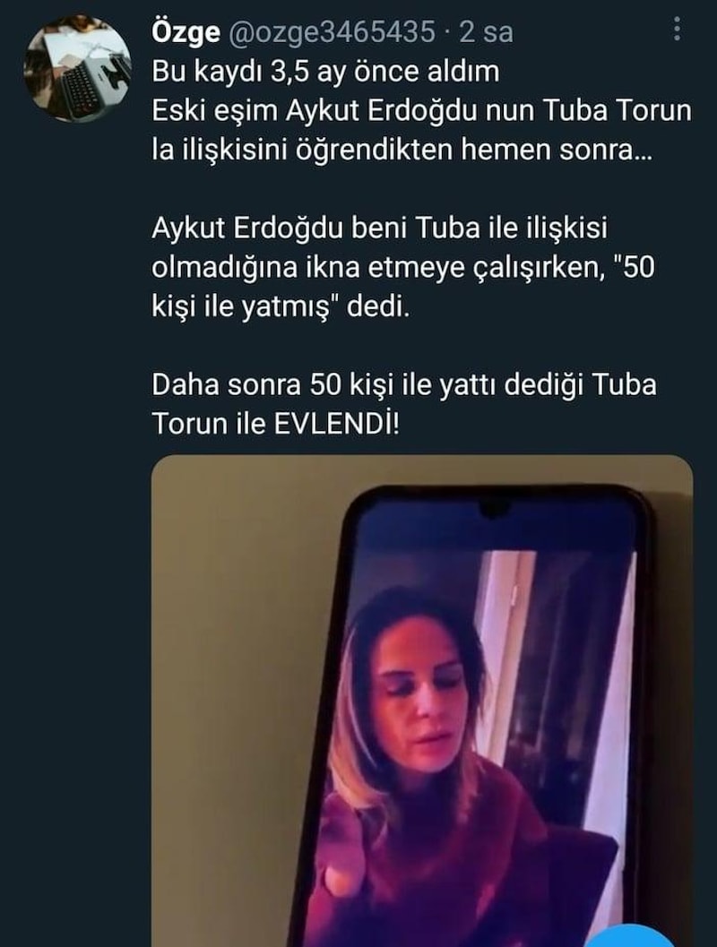 Ortaya çıkan ses kaydından Tuba Torun hastaneye kaldırıldı, Aykut Erdoğdu ise kamuoyundan ve yeni eşinden özür diledi.