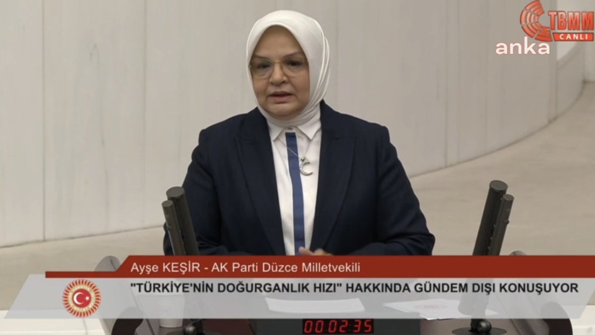 AK Parti MKYK Üyesi ve Düzce Milletvekili Ayşe Keşir, TBMM Genel Kurulu’nda yaptığı gündem dışı konuşmada, Türkiye’nin doğurganlık hızındaki tehlikeli düşüşe dikkat çekti.