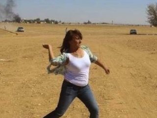 FOTOĞRAF: Aysel Tuğluk güvenlik güçlerine taş atıyor.