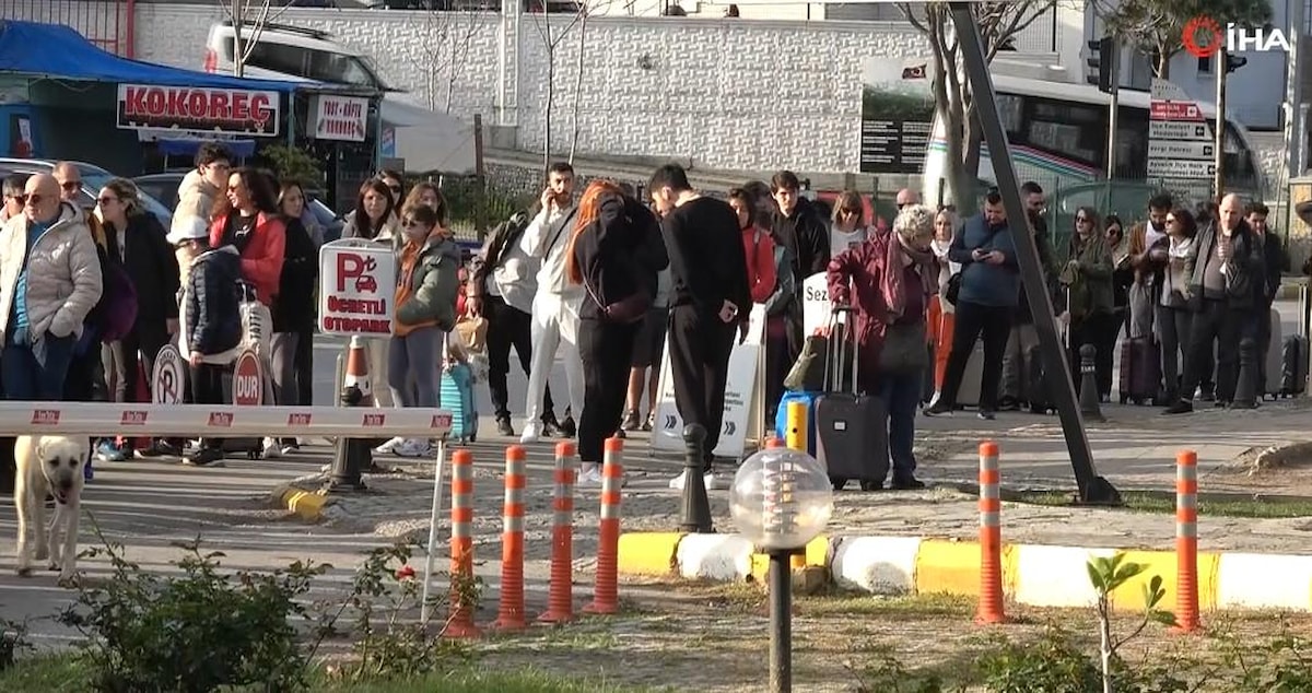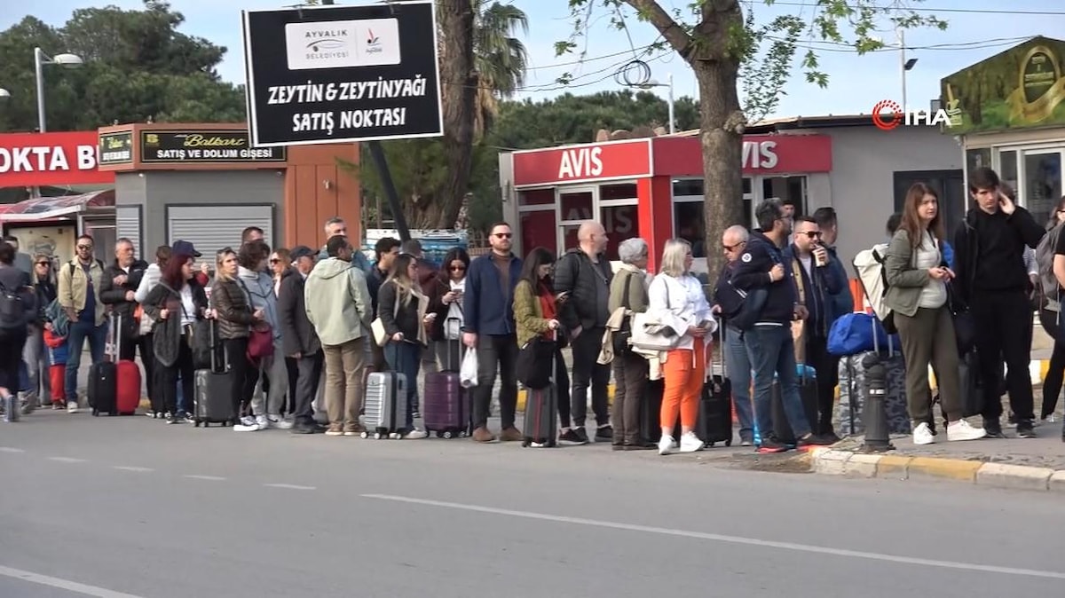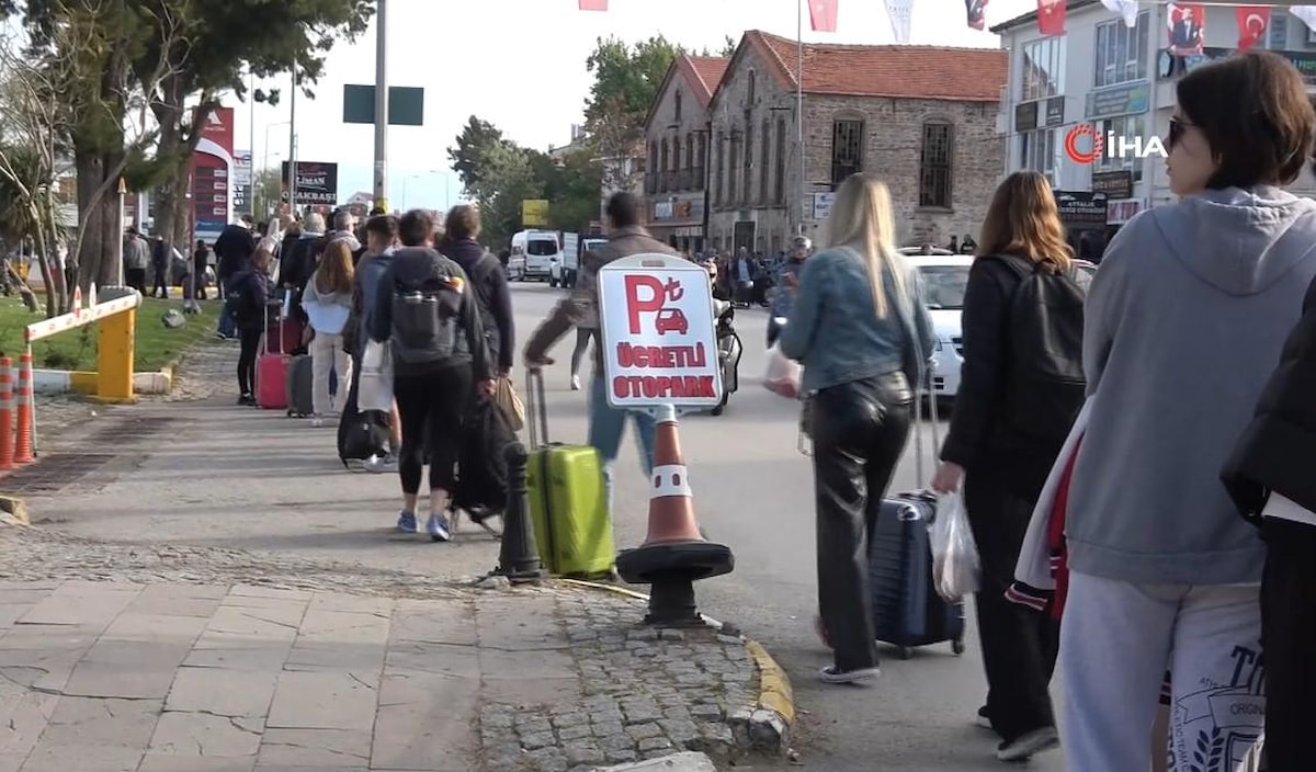 Ramazan Bayramı tatilini Yunan adalarında geçirmek isteyenler Balıkesir'in Ayvalık ilçesindeki deniz hudut kapısında uzun kuyruklar oluşturdu.