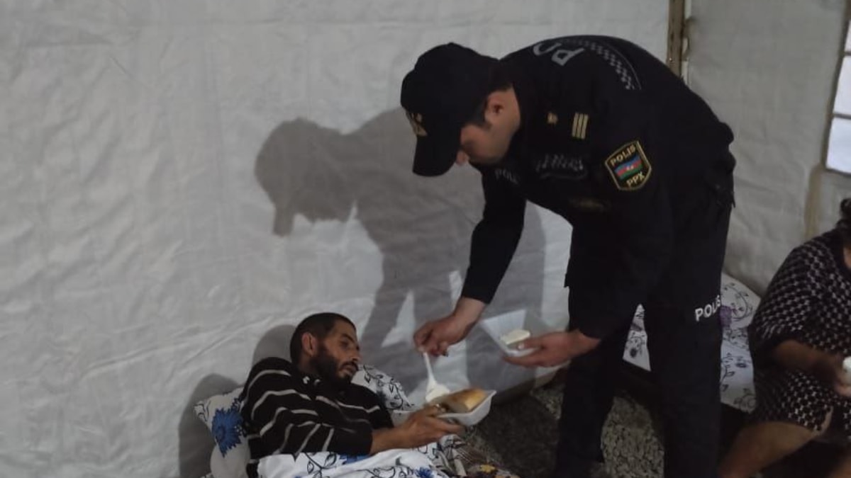 Bölgede huzuru sağlamak isteyen Azerbaycan askerleri, Karabağ'da bulunan yardıma muhtaç Ermeni vatandaşlarını da unutmadı.