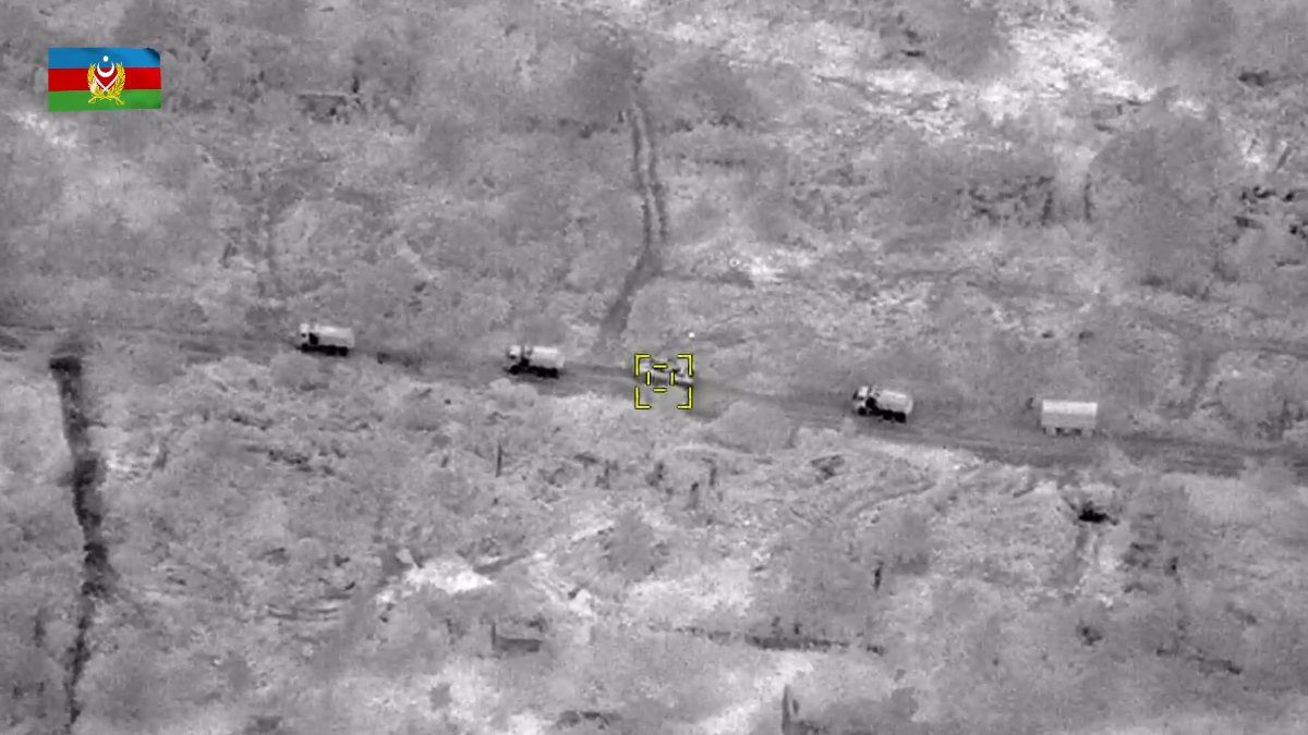 Azerbaycan Savunma Bakanlığı da o ana ilişkin havadan çekilmiş görüntüleri paylaştı.