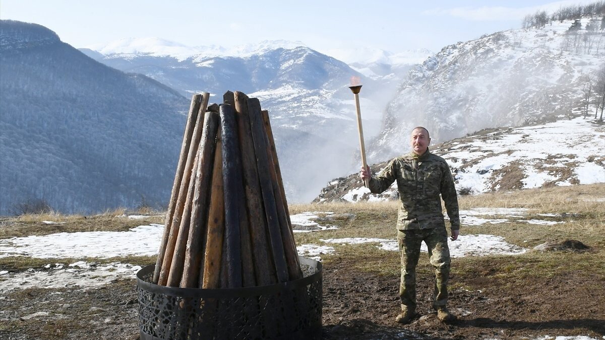 Azerbaycan Cumhurbaşkanı İlham Aliyev, Ermenistan'ın işgalinden kurtarılan Karabağ'ın sembol şehri Şuşa'da, Nevruz ateşini yaktı.