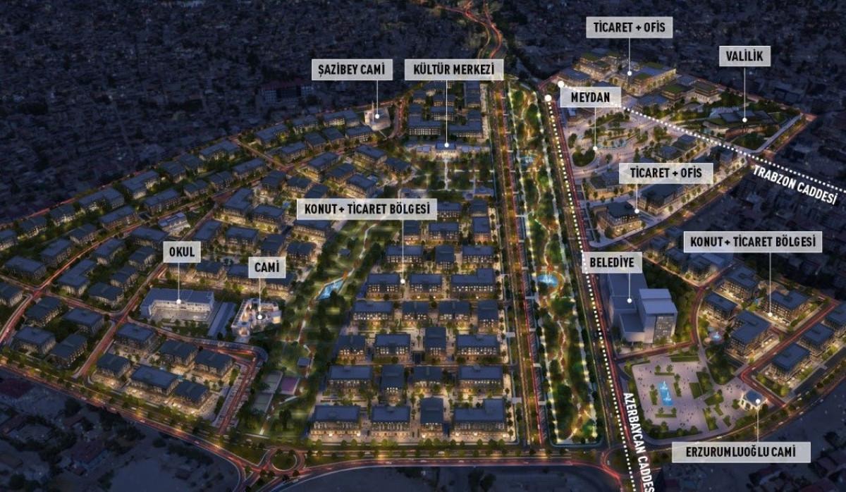 Azerbaycan Mahallesi olarak isimlendirilen 320 dönümlük alanda inşa edilen projede bin 323 konut ve 799 iş yeri olmak üzere toplam 2 bin 122 bağımsız bölüm bulunuyor.