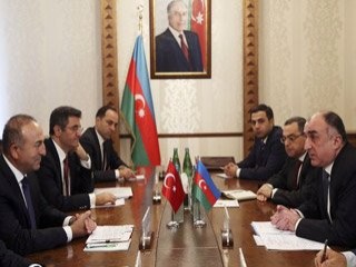 Aliyev, Çavuşoğlu'nu Bakü'de görmekten memnun olduğunu söyleyerek yeni kurulan 64. Hükümette görev alması nedeniyle de kutladı. Türkiye'nin ev sahipliğinde gerçekleştirilen G20 Liderler Zirvesi'ni hatırlatan Aliyev, Azerbaycan'ın davet edilmesinin iki ülke arasındaki dostluk ve kardeşlik ilişkilerinin göstergesi olduğunu belirtti. Çavuşoğlu ise Cumhurbaşkanı Recep Tayyip Erdoğan ve Başbakan Ahmet Davutoğlu'nun selamlarını iletti. Görüşme daha sonra basına kapalı olarak devam etti.