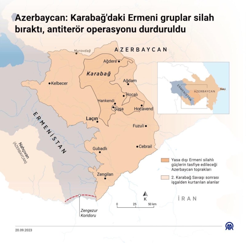 Azerbaycan, 2020'de yapılan ateşkes anlaşmasında ve Ermenistan'ın taahhüdünde yer aldığı üzere Azerbaycan toprağı olarak kabul edilen Karabağ'da anayasal düzeni sağlamak ve yasa dışı silahlı grupları temizlemek için antiterör operasyonu başlattı.
