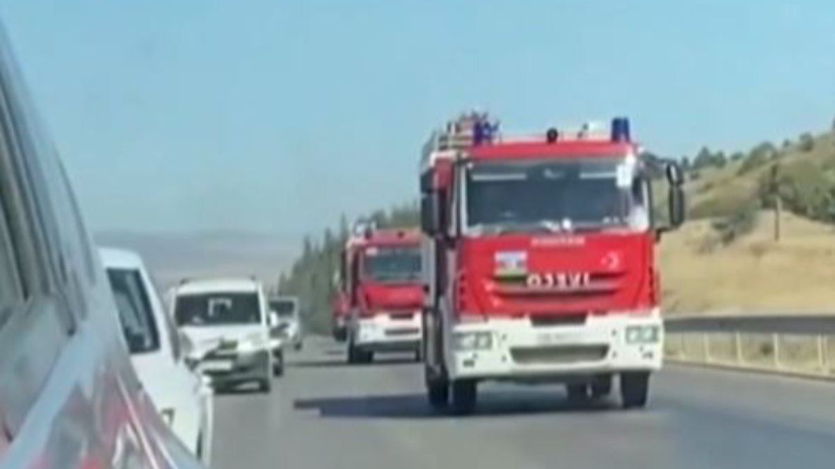Azerbaycanlı itfaiyeciler, konvoylar halinde alevlerin yükseldiği bölgeye müdahale etmek için harekete geçti.