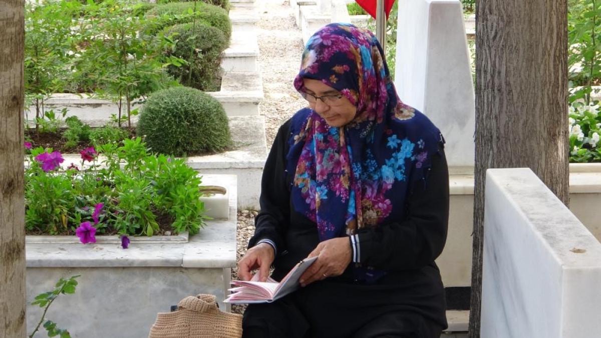Yakınlarının kabirleri başında Kur'an-ı Kerim okuyarak şehitlik ziyaretinde bulunan aileler, mezarlara çiçek bırakarak dua etti.