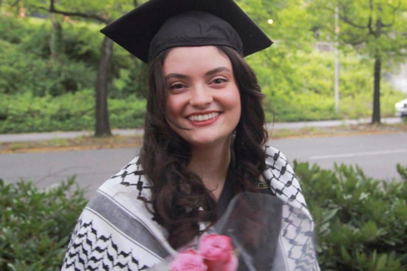 Washington Üniversitesi'nde düzenlenen Filistin yanlısı gösterilerde ön saflarda yer alan Eygi, günlerce süren eylemlerde İsrail'in yaptığı zulümleri haykırdı.