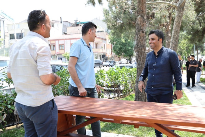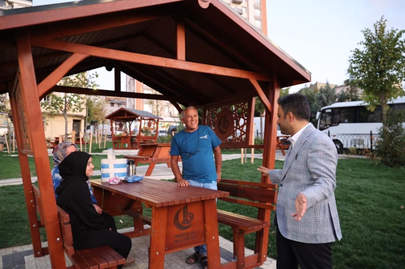 Son olarak bank, masa ve kamelyadan oluşan oturma gruplarıyla Mahalle Bahçesi hazır hale getiriliyor.