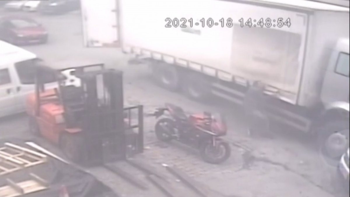 İstanbul'un Bağcılar ilçesine bağlı Bağlar Mahallesi'nde park halinde duran iplik yüklü kamyon, fabrikaya ürün taşındığı esnada freninin patlaması sonucu kaymaya başladı.
