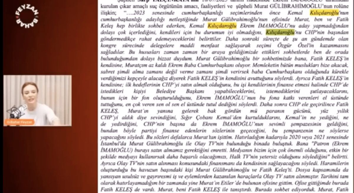 - Bahar Feyzan, İBB'nin rüşvet ve yolsuzluk iddianamesiyle ilgili bir YouTube videosu yayınladı.