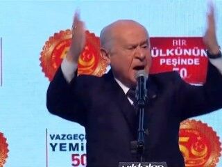 MHP Genel Başkanı Devlet Bahçeli'nin, partisinin 50. yılı nedeniyle yaptığı konuşmada coşkudan sesi kısıldı, partililer o sözlerin ardından Bahçeli'yi ayakta alkışladı.