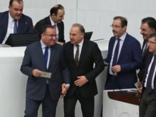 Adalet Bakanı Bekir Bozdağ, Anayasa Değişiklik görüşmelerinde, oyunu atmaya giderken CHP Grup Başkanvekili Levent Gök ile el ele tutuştu.