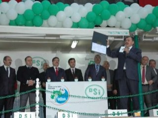 Eroğlu, “2011 yılına kadar Türkiye'nin en yüksek barajı 218 metre ile Ermenek barajı idi. Biz şimdi o rekoru da egale ettik 244 metre ile Deriner barajıdır. Deriner barajını da egale ederek şimdi 274 metre yükseği ile Yusufeli barajı olacak. Ondan daha yüksek barajı da hiç kimse yapamayacak, çünkü yapılacak başka baraj kalmayacak. Bizim ülkemiz yarı kurak olan bir bölgedir. Biz bin günde bin gölet yapalım dedik. 1 Ocak 2012 yılında başlanılan gölet bu yıl içerisinde tamamlanacak. Yıl sonuna kadar da 1071 tane gölet yapılmış olacak. Geçmiş hükümetler 50 yılda 400 göleti zor yaptı biz üç yılda 1071 göleti bitirmiş olacağız” diye konuştu.