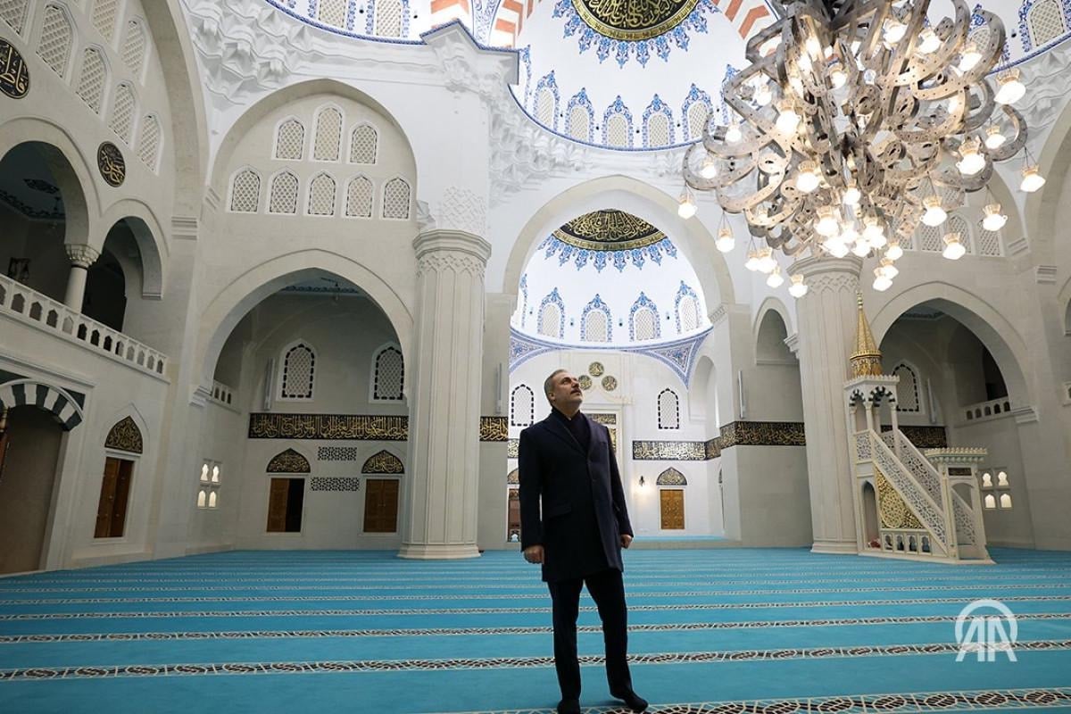 Paylaşımda, Fidan'ın, camiyi incelerken ve halkla sohbet ederken çekilen fotoğraflarına yer verildi.