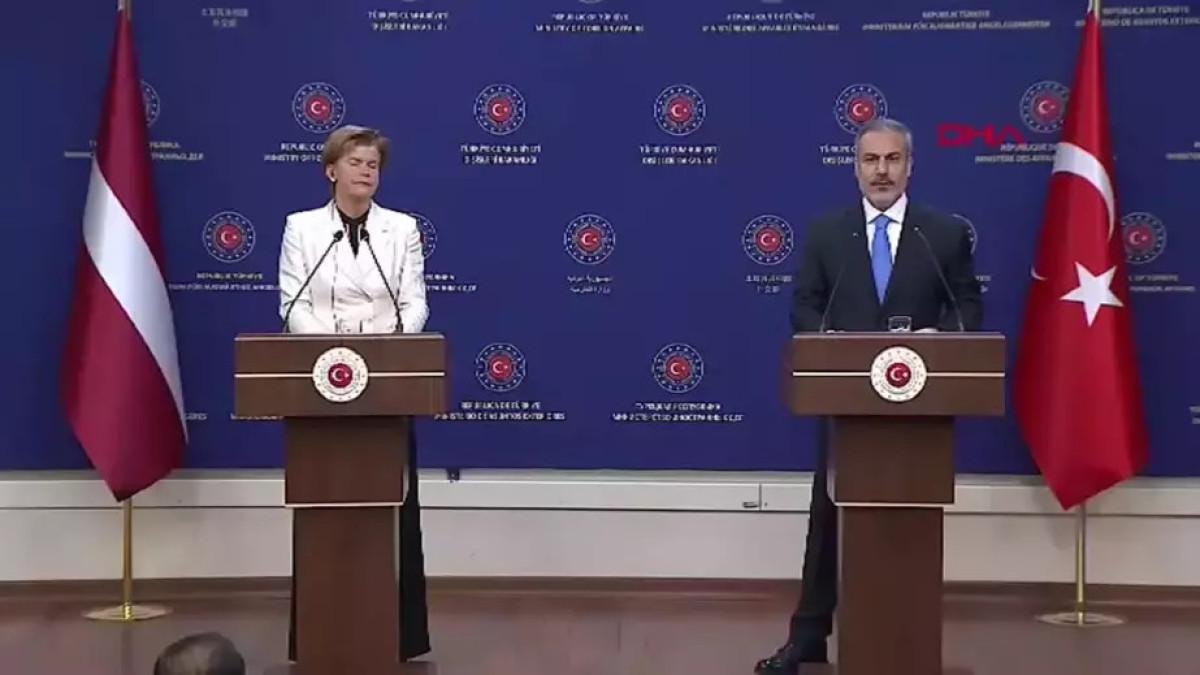 Letonya Dışişleri Bakanı Baiba Braze ile bakanlıkta bir araya gelen Bakan Hakan Fidan, ikili ve heyetler arası görüşmenin ardından düzenlenen ortak basın toplantısında konuştu.