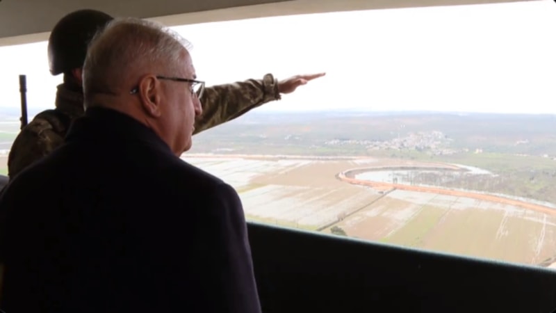 Beraberinde Kara Kuvvetleri Komutanı Orgeneral Selçuk Bayraktaroğlu ile Ziyaret Karakolu’na gelen Bakan Yaşar Güler, nöbet kulesine çıkarak Mehmetçiklerden güvenlik tedbirlerine ilişkin bilgi aldı.