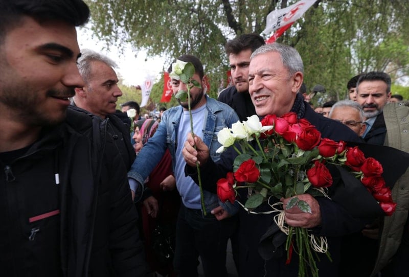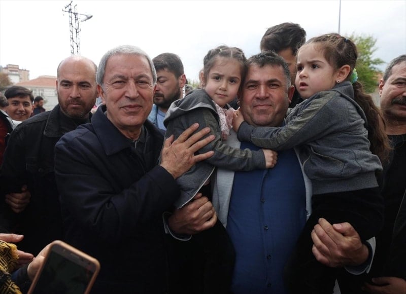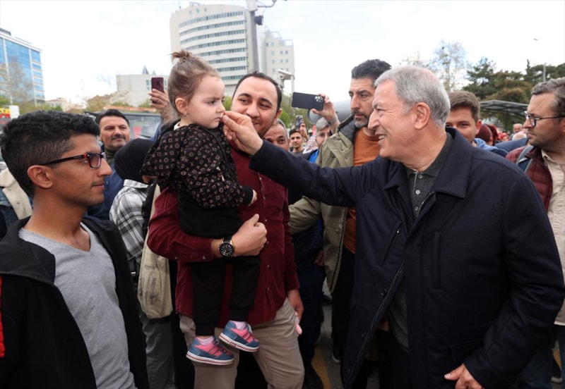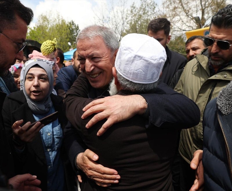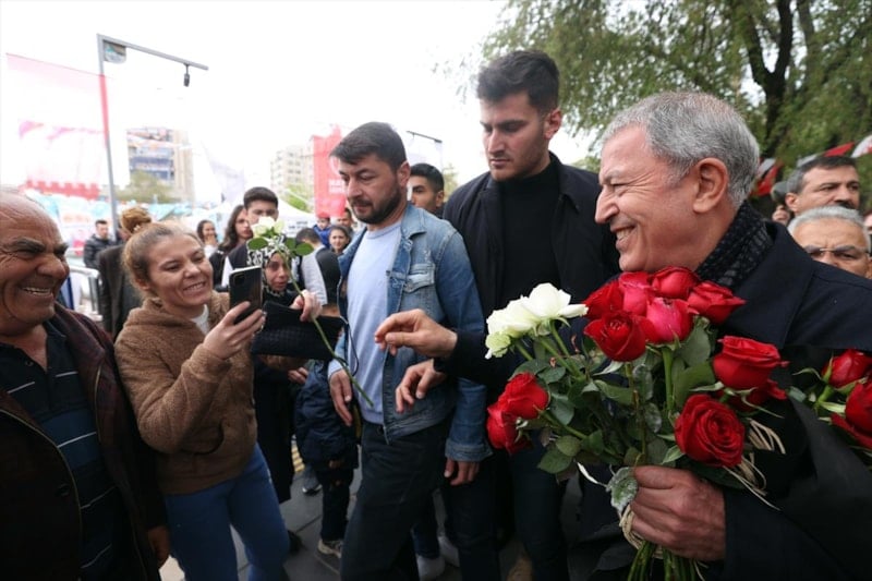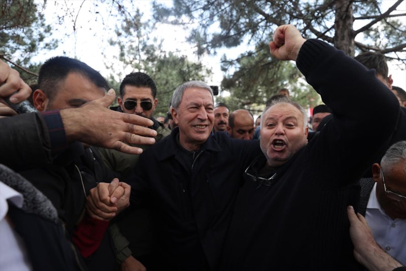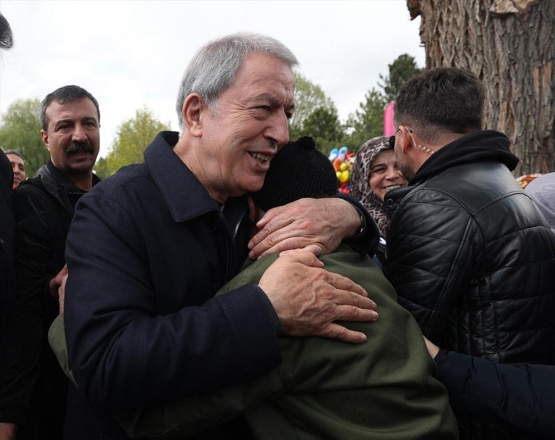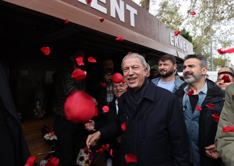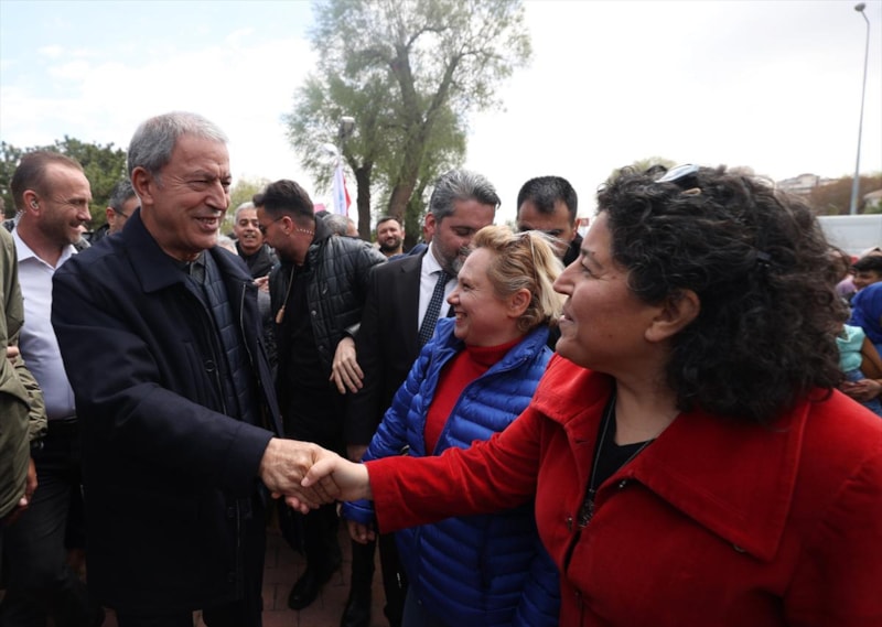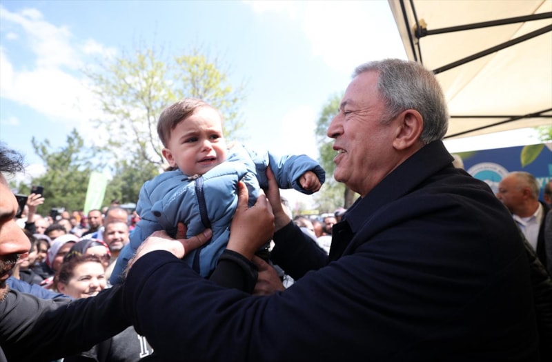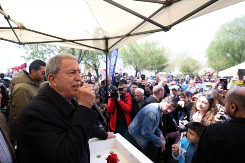 Burada vatandaşlara seslenen Bakan Akar, "Devlet ve millet el ele omuz omuza 85 milyon birlikte yürüyoruz. 85 milyon tek yürek, tek millet, tek güç. Hep beraber yürüyerek inşallah ülkemizin bekasını da refahını da sağlayacağız. Bugüne kadar problemleri çöze çöze geldik kalan problemleri de inşallah 14 Mayıs’tan sonra çözeceğiz." diye konuştu.