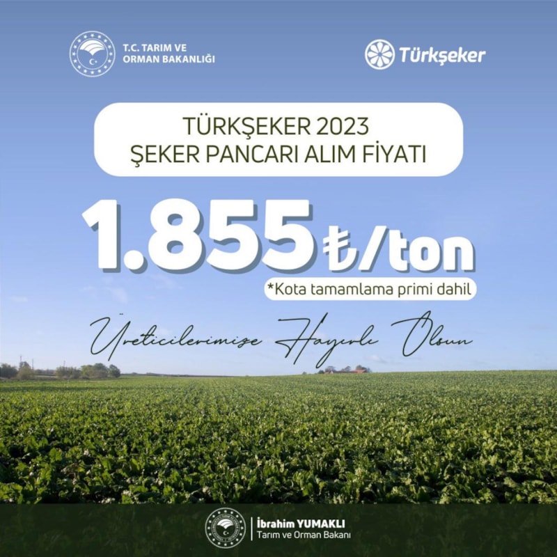Tarım ve Orman Bakanı İbrahim Yumaklı, Türkşeker'in şeker pancarı alım fiyatının ton başına bin 855 lira olarak belirlendiğini açıkladı.