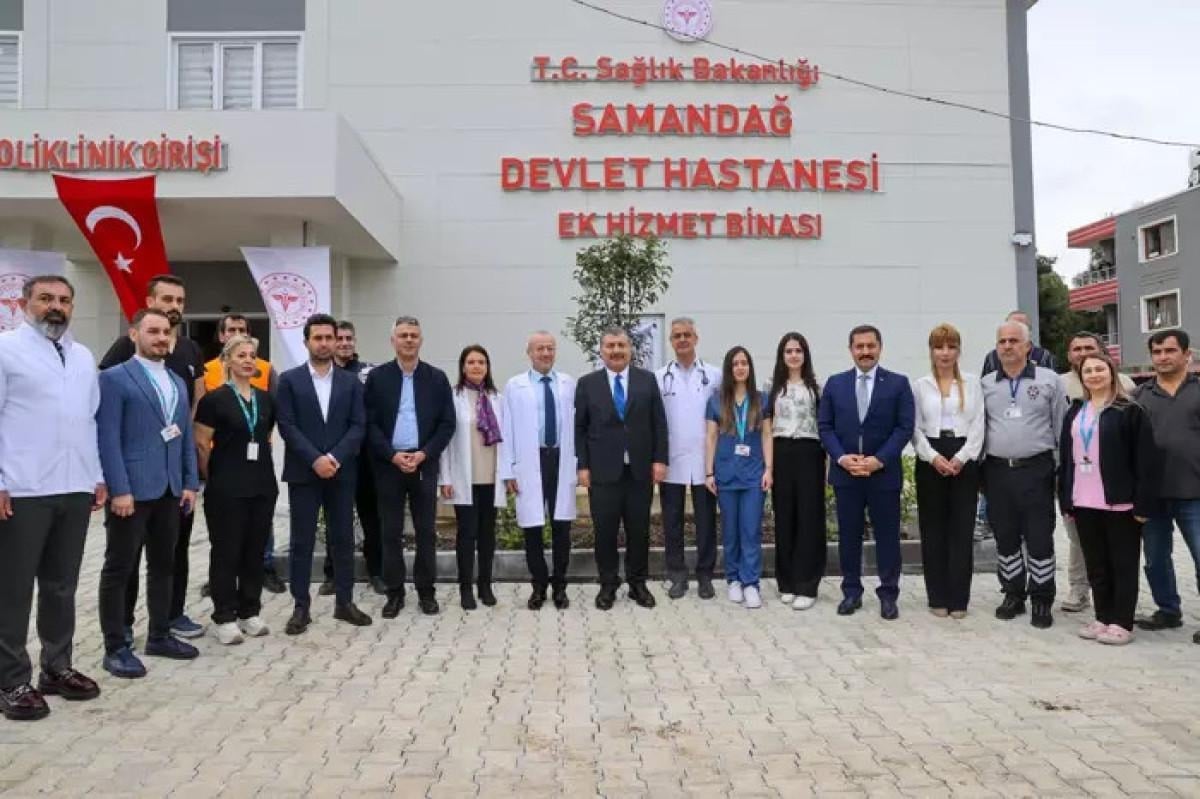 Bakan Koca, daha sonra Samandağ Devlet Hastanesi Ek Hizmet Binası'nda sağlık çalışanlarıyla bir araya geldi.
