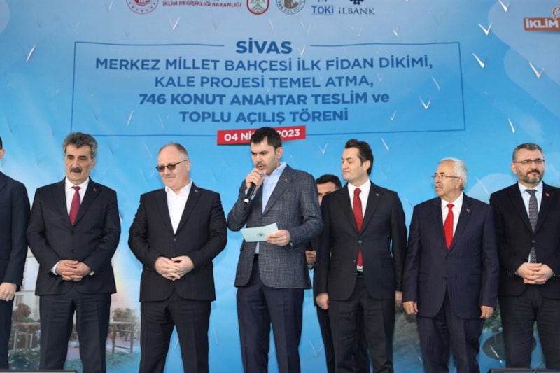 “Sivas Merkez Millet Bahçesi İlk Fidan Dikimi, Kale Projesi Temel Atma ve 746 Konut Anahtar Teslim Töreni”nde konuşan Çevre, Şehircilik ve İklim Değişikliği Bakanı Murat Kurum, "Biz yavrularımızın istikbali için kentsel dönüşüm milletimizin canıdır dedik, malıdır dedik ve demeye de devam edeceğiz" dedi.