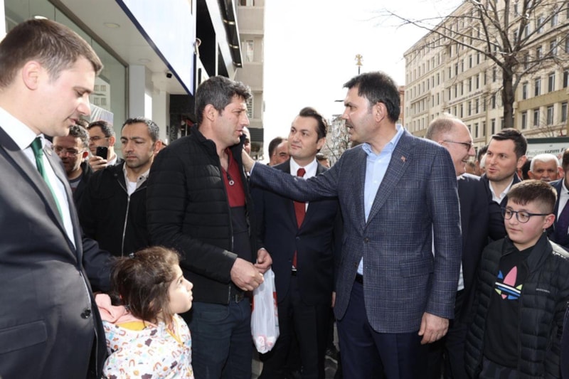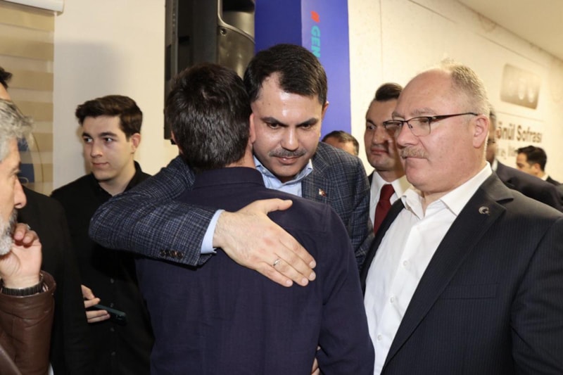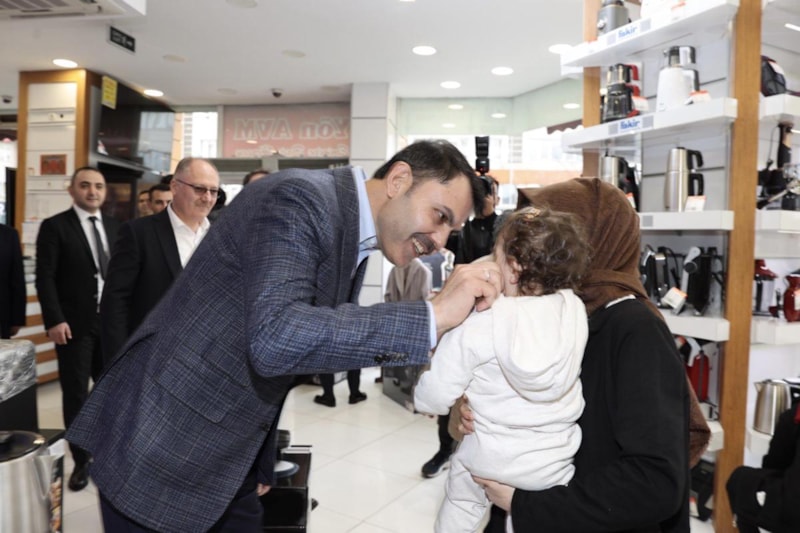 Ardından vatandaşlara konutlarının anahtarlarını teslim eden Bakan Kurum esnaf ziyaretinde bulunarak İstasyon Caddesi 50.yıl kavşağında gençlerle “İftara Beş Kala” programına katıldı.